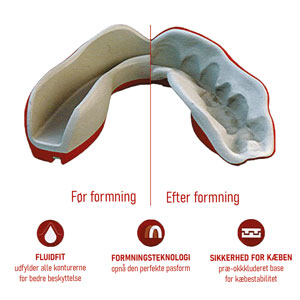 De har også en Fluid-Fit-teknologi, der gør det muligt at forme tandbeskytteren efter dine tænder for en skræddersyet pasform.